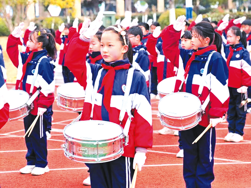 “水润九雅”化人。学校“让颗颗水滴都闪亮”的理念催生德育新生态。思想阵地与少先队活动巧妙融合,主题德育与“争章积分”趣味相连。晨会课解读“雅行”,班队课践行“雅规”,红领巾广播传递“雅言”,九种高雅品行如清泉浸润日常。星级学生评选、文明班级流动红旗竞争,让良好习惯在“日巡查、周考核”中扎根。 身心培育筑基。学校联合相关部门开展体质测试与视力筛查构筑健康防线,应急救护演练提升生存技能。心理健康教育网络织就关爱之网,“五项管理”精准发力,破解成长瓶颈,为全面发展铺就坚实路基。“头雁奋飞”引领文明航程