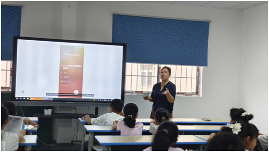次日,澴潭镇小学教联体教师团队带来的课程更显匠心。诗歌朗诵课上,代老师以《大写的中国》《强国有我》《我长大了》等作品为载体,通过气息训练、情感引导,带领学生感受文字的力量。当孩子们用稚嫩却坚定的声音诵读“请党放心,强国有我”时,爱国主义的种子已然生根。