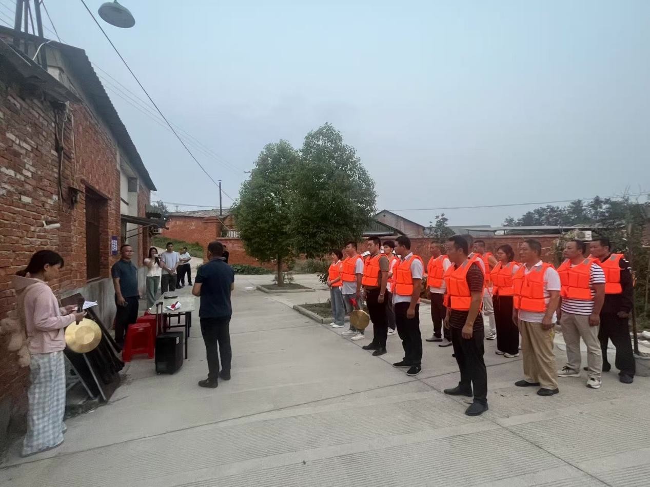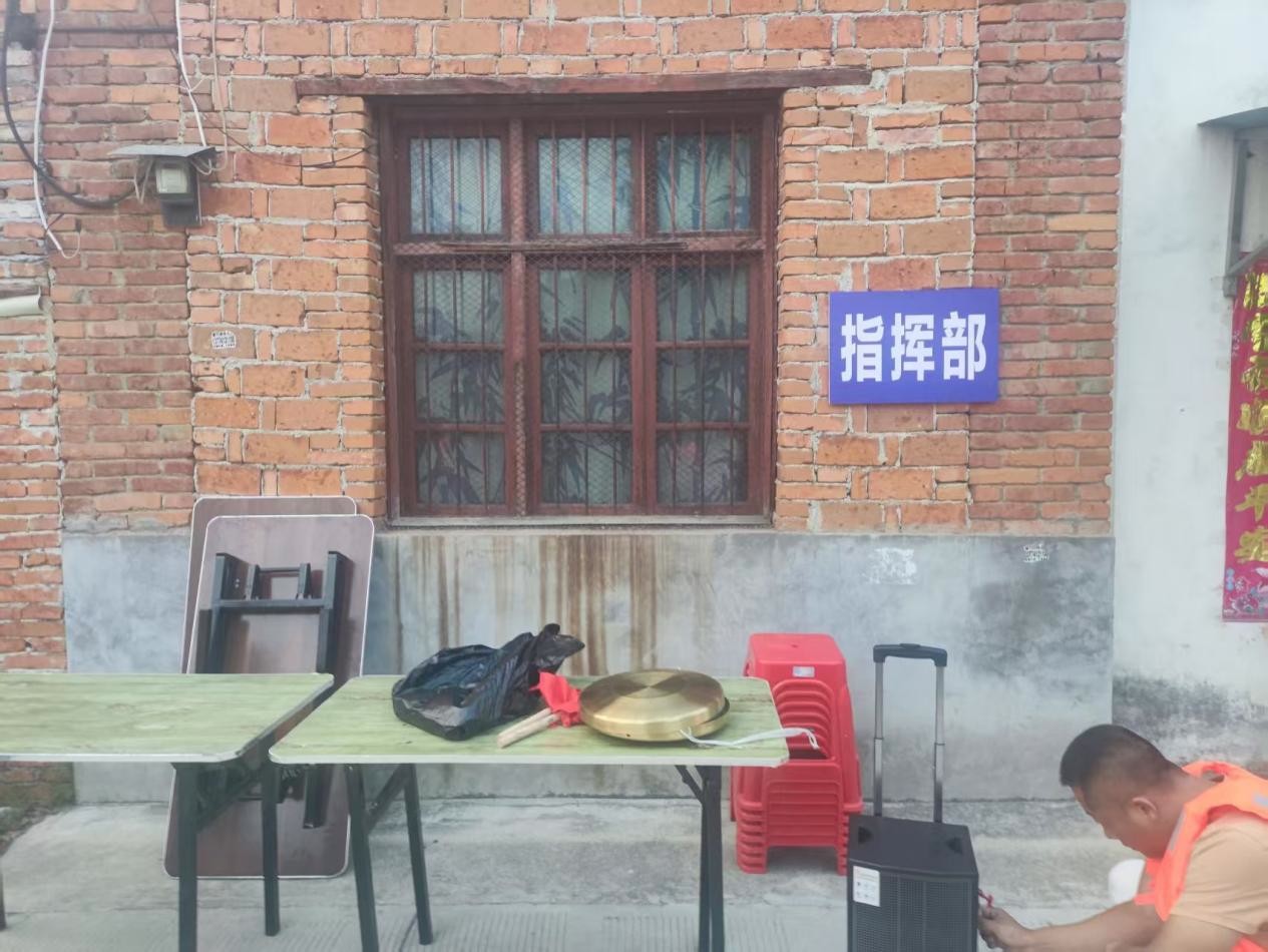 接到抢险转移命令后,防汛指挥部各工作组的小组成员立即到岗到位,随着敲锣声和防空警报声响起,小组成员迅速到户通知并护送居民转运到临时安置点。