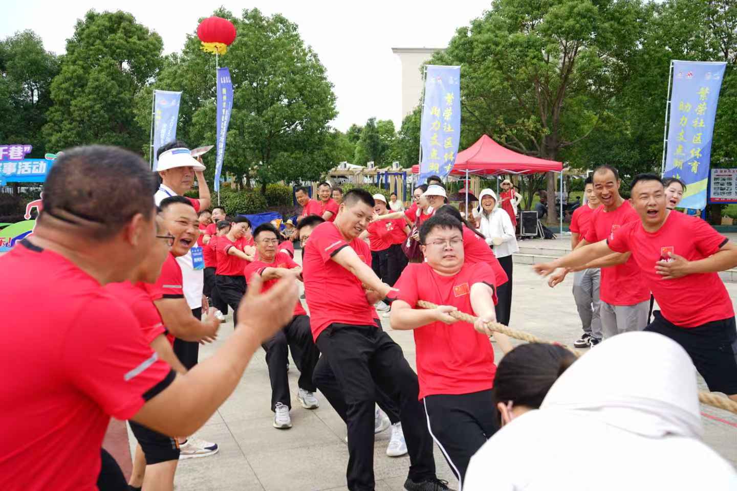 活动现场举行了拔河,接力竞走,沙包掷准,旱地龙舟4项项目,选手们奋力拼搏,挥洒汗水,加油声、欢笑声交织成一片欢乐的海洋。