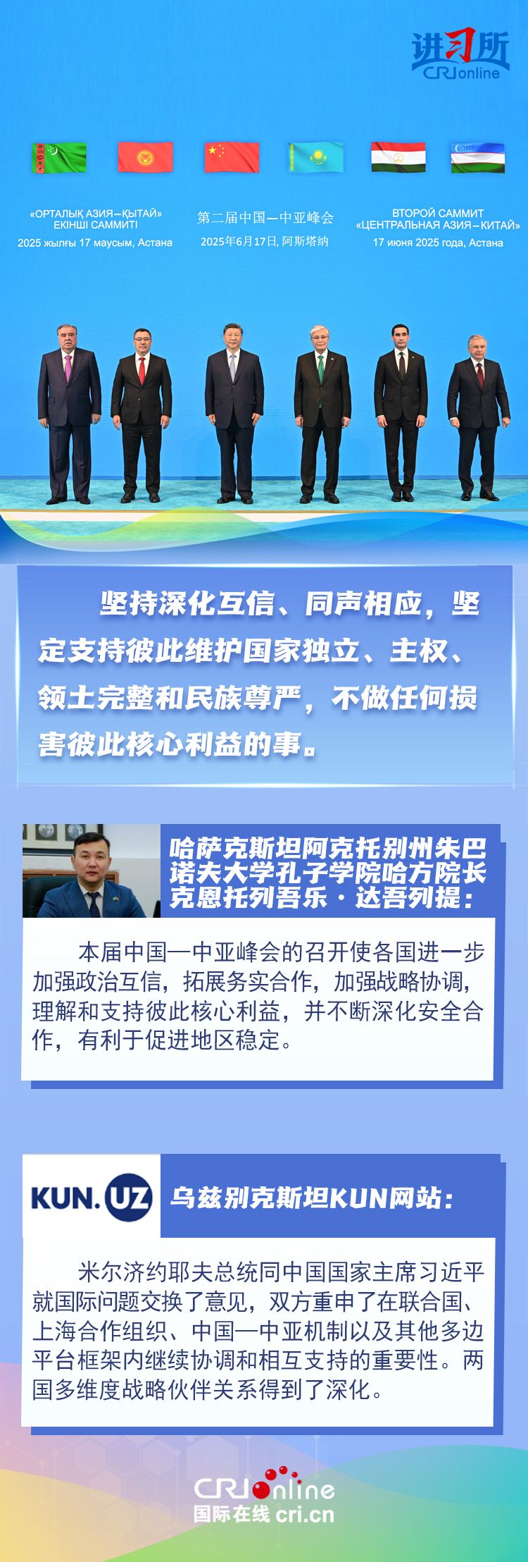 “兼相爱,交相利。”从“中国—中亚机制”到“中国—中亚精神”,新时代以来,中国同中亚国家关系不断迈上新台阶,朝着命运共同体目标砥砺前行。国际舆论及中亚各界人士认为,习近平主席提出的“中国—中亚精神”为未来地区各国共同发展指明了正确道路,体现出中国希望看到整个地区取得成功的真诚愿望。