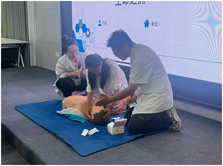 活动现场,学院急救培训讲师通过“理论讲解+模拟演练”相结合的方式,系统教授了心肺复苏的操作流程、气道异物梗阻的海姆立克急救法以及外伤止血包扎技巧。参训人员在指导下轮流使用人体模型进行实操练习,确保动作规范、步骤准确。