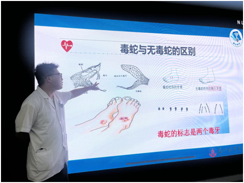本次培训特别增设了“蛇咬伤应急处置”特色课程。针对随州地处鄂北,夏季蛇类活动频繁的地域特点,讲师详细讲解了毒蛇识别、伤口紧急处理、抗蛇毒血清应用等专业知识,并现场演示了加压绷带包扎法等实用技能,受到参训人员的一致好评。