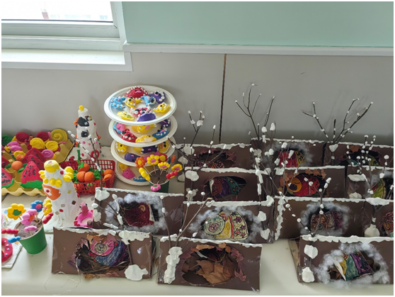 在活动筹备环节,全园教师群策群力,对本学期保教工作亮点进行系统梳理与深度挖掘。各班教师依据幼儿的年龄特征与发展目标,充分发挥创意,科学规划并精心布置展示区域。从主题课程中幼儿们的探索历程,到其在健康、语言、社会、科学、艺术五大领域的学习收获;从区域活动里孩子们专注投入的精彩画面,到特色活动中闪现的奇思妙想,均借助图文并茂的展板、精致的手工作品、生动的视频等多元形式予以呈现。孩子们亲手制作的色彩绚丽的手工艺品、充满童真童趣的绘画作品,记录下他们探索世界的珍贵足迹;详实的主题课程探究报告、精彩的学习故事,则生动展现出幼儿思维能力逐步发展的过程。