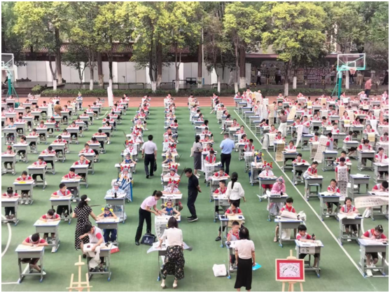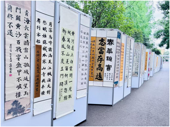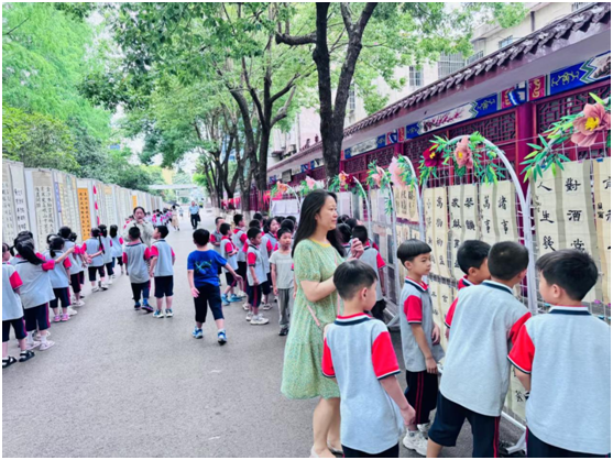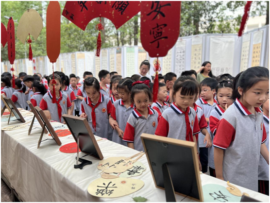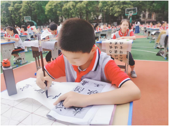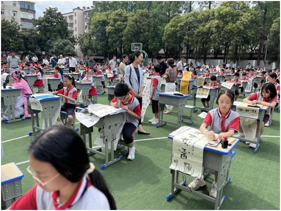大操场上,墨香四溢。300余名学生进行现场书法展示。学生们挥毫泼墨,或端正有型的硬笔,或活泼潇洒的软笔,每一个笔触中尽显书法韵味,令现场观看的各位领导和老师拍手称赞。感恩路上,教联体学生书法作品展引得大家驻足凝神欣赏。实验小学教联体各校共育剪纸和书法课程,共同打造剪纸和书法特色教育名片,不仅注重技法传授,还通过剪纸、书法教育培养学生的人文素养和文化自信。