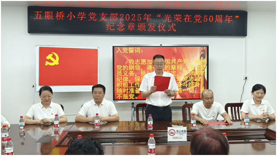 ——曾都区五眼桥小学举行“光荣在党50年”颁章仪式
