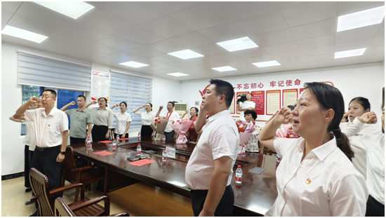 重温誓词铭初心,铿锵誓言践忠诚。在鲜红的党旗前,全体党员高举右拳,重温入党誓词。字字千钧的誓言响彻会场,激荡着每一位党员的信仰与担当,以庄严承诺彰显为党育人、为国育才的坚定信念。