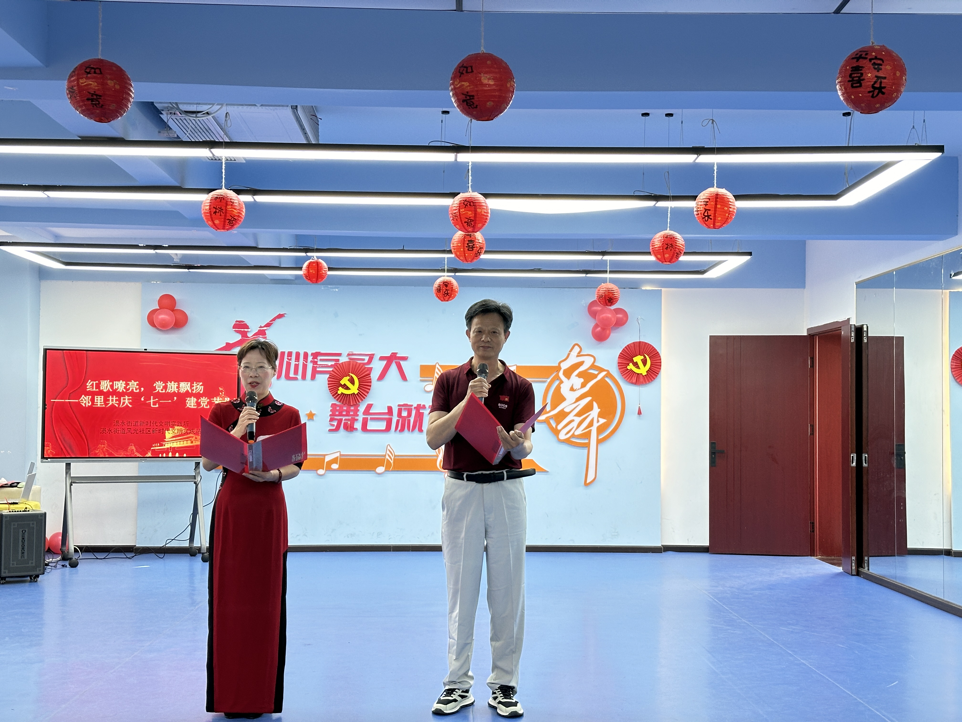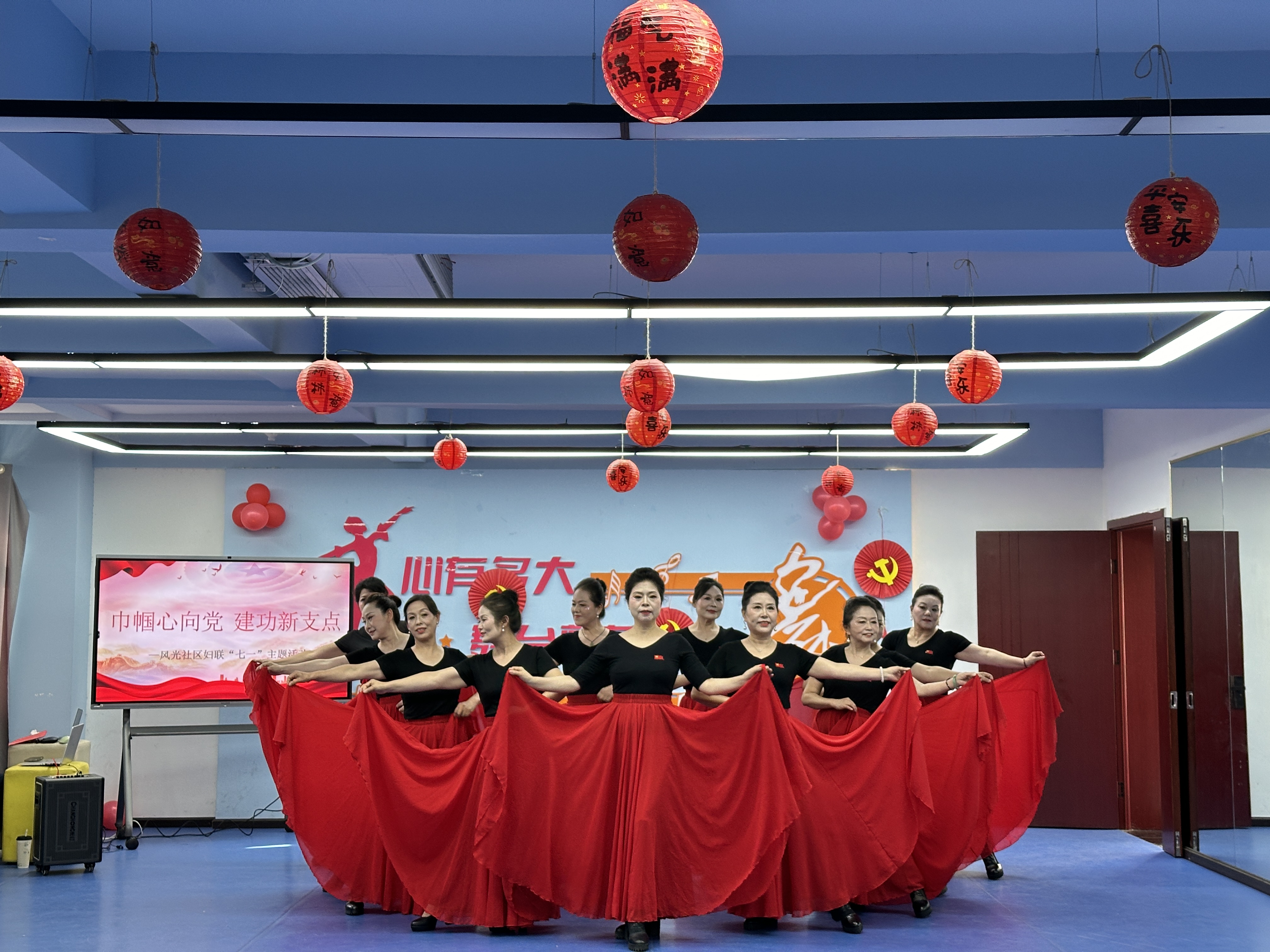 为热烈庆祝中国共产党成立104周年,赓续红色血脉、汇聚奋进动能,6月30日下午,风光社区举办“红歌嘹亮,党旗飘扬——共庆“七一”建党节主题活动,吸引了100余名党员群众参与,大家齐聚一堂共叙爱党情怀。活动通过歌舞、朗诵等多元艺术形式,奏响时代强音,为辖区党员群众带来一场沉浸式红色文化视听盛宴。
