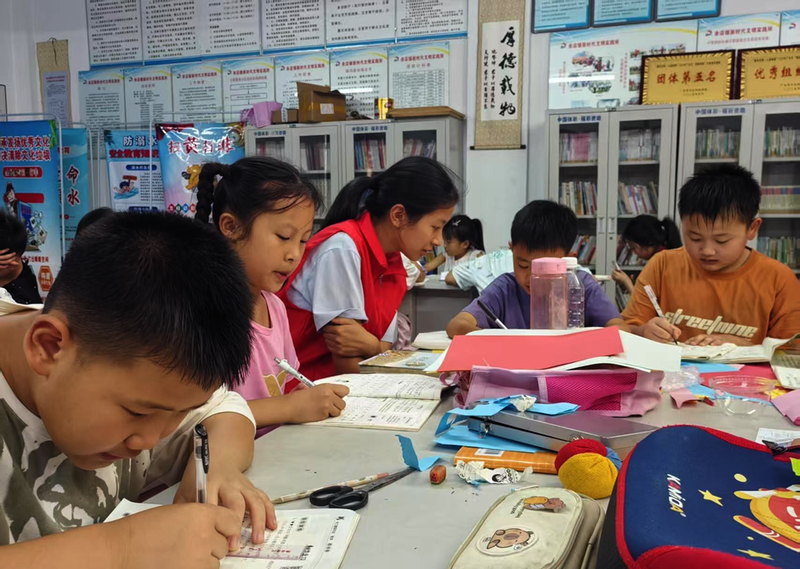 7月4日,广水市余店镇新时代文明实践所“暑假学堂”开课,返乡大学生志愿者们对孩子们进行课业辅导和爱心陪护。志愿者仔细检查孩子们作业完成情况,组织学生集中观看安全防溺水主题教育视频。通过教育活动,为孩子们安全度过假期提供坚实保障。 (随州日报通讯员高晓涵、卢玉鑫摄)