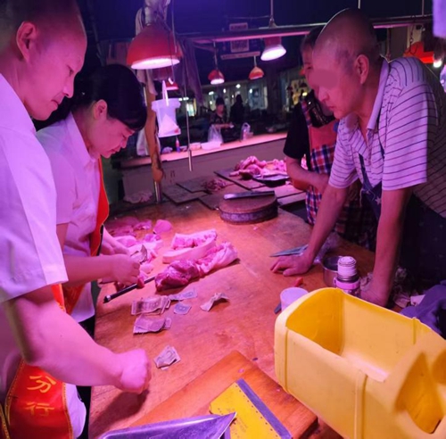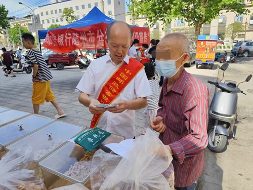 本次活动采用“阵地+流动”双线宣传模式,力求覆盖市场全区域。在烈山市场入口处,邮储银行设立了醒目的咨询服务台,悬挂“维护人民币流通秩序 保障群众合法权益”主题横幅,摆放图文并茂的宣传展板,并循环播放假币识别动画视频,吸引了不少群众驻足观看。与此同时,宣传小分队主动“走出去”,分组深入市场各摊位,特别是水产、肉类等现金交易频繁的区域,进行面对面的精准宣传。