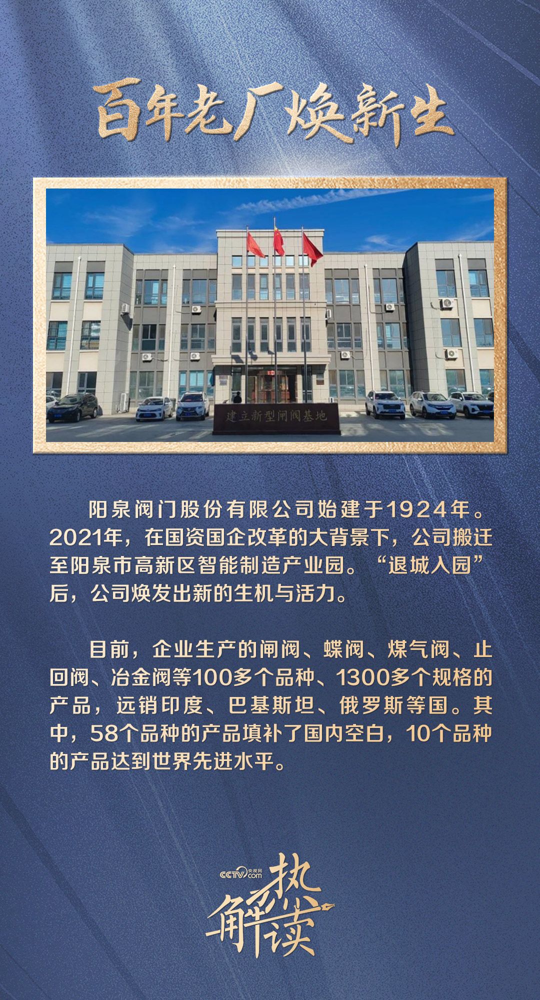 在狮脑山顶峰,百团大战纪念碑如同一把锋利的刺刀直插云霄。自此东约20公里,是一片创新高地——高新区智能制造产业园,百年老厂阳泉阀门股份有限公司就坐落于此。