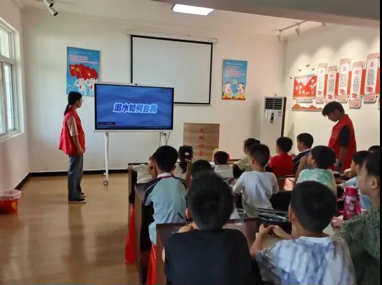 安全教育是开班第一课的重中之重。志愿者们通过案例讲解、情景模拟等方式开展防溺水宣讲,从“远离危险水域” 的基础常识,到“智慧呼救”“同伴互助”的实用技巧,层层递进的内容让孩子们听得专注。互动问答时,一只只小手踊跃举起,稚嫩却坚定地回答,显露出孩子们强烈的安全意识。