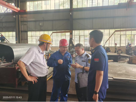 在高新区一家企业,检查人员对动火作业现场落实“六必须”“九不准”等安全管理规定情况进行现场,现场核实动火作业人员证件,普及动火作业安全知识。