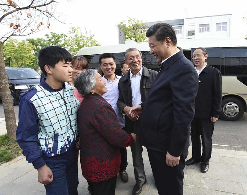 △ 2016年4月25日,习近平总书记在安徽省滁州市凤阳县小岗村看望当年“大包干”带头人严金昌(右三)一家。