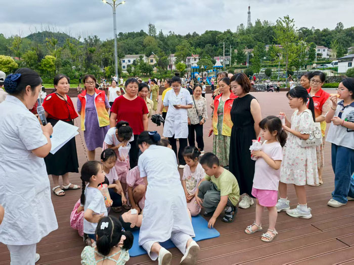 随州新闻网讯 (通讯员吴娟)夏夜的洛阳镇广场晚风习习,却挡不住居民们学习急救知识的热情。7月22日傍晚7点,洛阳镇卫生院的医护人员利用休息时间,带着专业设备走进广场,开展了一场别开生面的急救知识普及活动,重点围绕防溺水应急处置、心肺复苏(CPR)及AED使用方法展开实操教学。