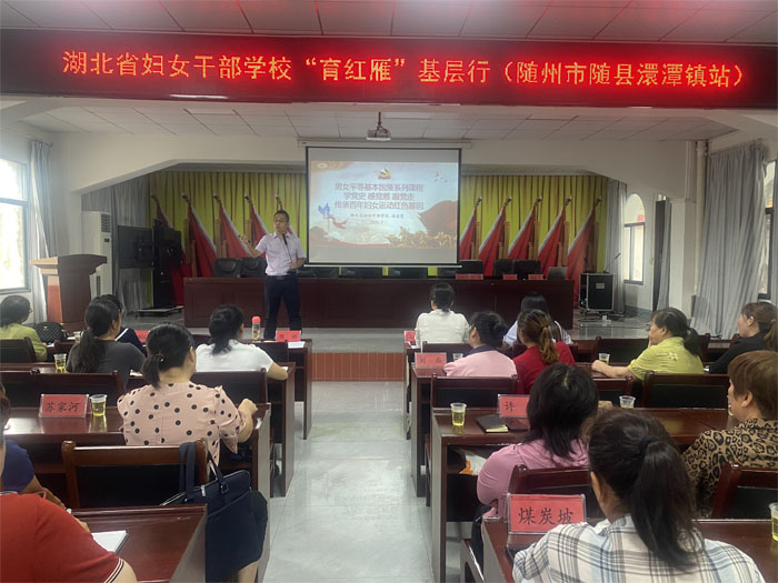 随州新闻网讯(通讯员朱清娥、胡文洁)为深化基层妇联组织建设,切实提升基层妇联干部队伍政治素养和履职能力,7月22日,湖北省妇女干部学校走进澴潭镇,开展“育红雁”基层行——送课下乡活动。随县妇联机关干部、澴潭镇妇联干部、澴潭镇各村(社区)妇联主席及执委、“三新”领域妇联执委等百余人参加培训。