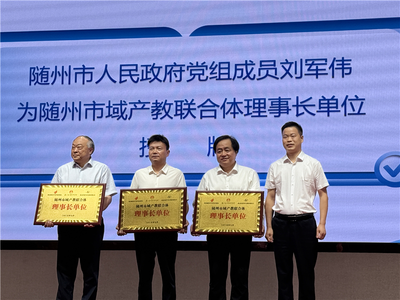 刘军伟分别为随州市域产教联合体理事长单位和随州市域产教联合体副理事长单位授牌。
