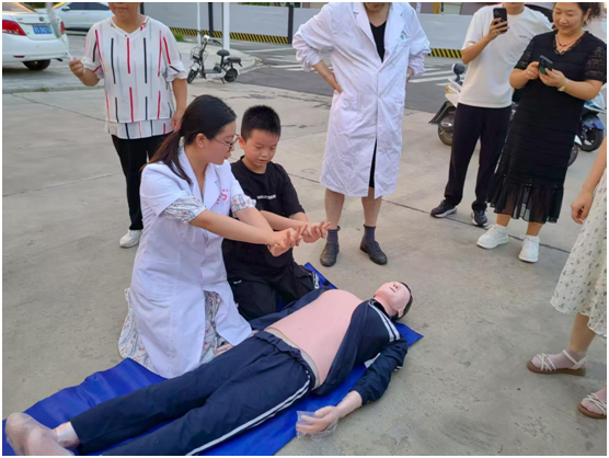 本次活动最动人的篇章,在于将守护生命的理论转化为可触摸的实践。面对溺水救援分秒必争的特性,医务人员特别设置了心肺复苏(CPR)沉浸式学习环节。借助逼真的教学模型,他们分解动作、耐心示范,更热情鼓励孩子们“亲手”触摸生命的重量。一双双小手在指导下,带着天然的认真与对生命本能的敬畏,一次次按压练习。这不仅是急救知识的启蒙,更是在幼小灵魂深处悄然埋下珍视生命、敢于担当的种子,让安全意识从体验中破土萌芽。