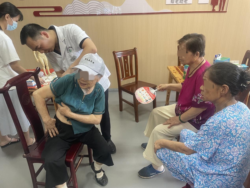 活动现场热闹非凡,该中心充分发挥中医康复科的专业优势,为居民们提供中医问诊、推拿、穴位贴敷等多项惠民服务。在亚通老年活动室内,中心经验丰富的康复医师彭医生一边为居民进行推拿和穴位贴敷操作,一边结合经络穴位知识进行深入浅出的讲解,让老人们亲身感受中医传统疗法的独特魅力。值得一提的是,该中心国医堂被授予“湖北省示范国医堂”“随州市乡镇重点专科”称号。且科室配备电脑中低频、疼痛治疗仪、多功能牵引床等先进设备,能开展中医内服外用、药浴、针刺、艾灸、刮痧、拔罐、中药贴敷、穴位注射,以及运动疗法(PT)、作业疗法(OT)、物理因子治疗等传统与现代相结合的康复项目。此外,科室现有340余种中药饮片,能够高效诊疗中医常见病和多发病,为居民的健康提供了坚实的保障。