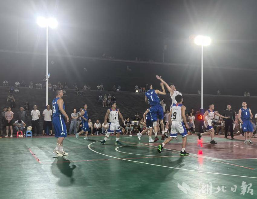湖北日报客户端讯(通讯员施怡君)7月22日晚,长岭镇大坝篮球场华灯璀璨,热闹非凡,2025年“翔瑞粮贸杯”篮球邀约赛在这里盛大开幕,为夏日的长岭镇拉开了一场为期8天的篮球盛宴。从7月22日至7月29日,6支队伍、18场精彩对决将在这里上演,每天2场的激烈角逐为这座小镇带来了无尽活力与激情,更悄然掀起了一股地摊经济的新浪潮。