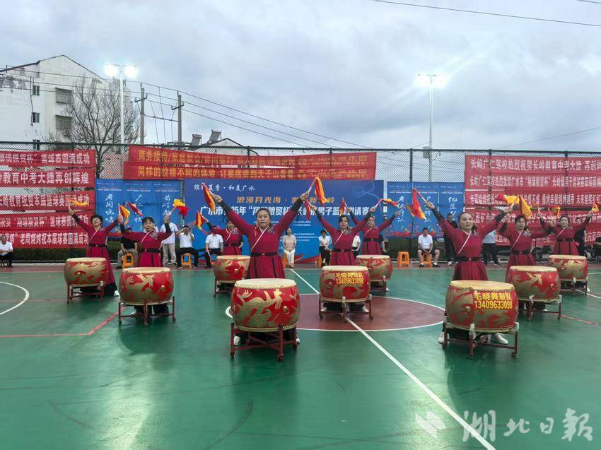 长岭镇篮球赛的魅力,不仅在于比赛本身,更在于它与当地特色文化的深度融合。在正式开赛前,长岭镇民间艺术家们自发献上演出,菜畈村鼓舞队率先登场,尽显传统文化的独特魅力;幼儿园老师们舞蹈轻盈活力,充满童真;歌唱爱好者们歌声嘹亮,为开幕式增添无限光彩。在赛场周边,长岭镇的特色手工艺品、特色美食等元素成了地摊经济的亮点,观众在观看比赛之余,还能深入了解长岭的历史文化,购买具有地方特色的纪念品。