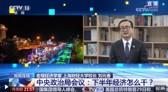 上半年中国经济实现稳中向好,那么下半年经济要怎样发力?7月30日,中共中央政治局会议召开,分析研究当前经济形势,部署下半年经济工作。下半年经济工作的重点是什么?还有哪些相应的政策需要出台和落地?我们如何实现全年经济增长目标以及“十四五”的圆满收官?《新闻1+1》本期节目主持人董倩连线宏观经济学家、上海财经大学校长刘元春,带来分析解读。
