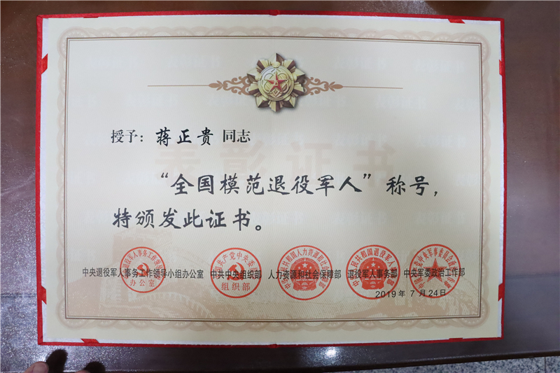 年近七旬的蒋正贵,鬓角已染霜,脊背却依旧挺直如松。这份挺拔,源自七年军旅生涯的淬炼——“特等射手”“先行班长”“优秀义务兵”,一枚枚军功章不仅铭刻着青春荣光,更锻造出他“敢啃硬骨头”的军人本色。退役后,他历任多个岗位,始终以军人标准要求自己,成绩斐然。