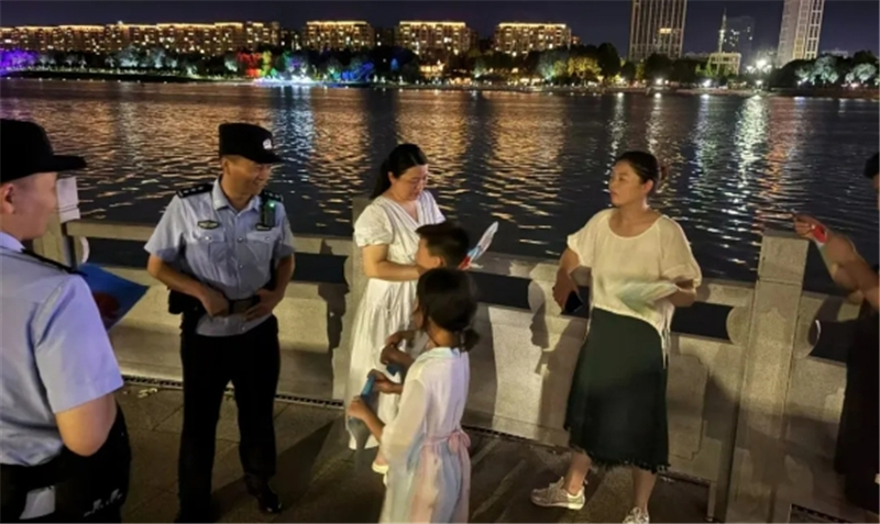 针对夏季高温溺水、电信诈骗、入室盗窃等突出风险隐患,全市派出所民警辅警深入商圈、群众纳凉场所、水域附近开展“摆摊式”安全宣传,特别是对未成年人、老年人等特殊群体,“靶向”开展安全宣传教育和安全防范提醒,全力提升群众的自我防范意识。行动期间,全市共设置宣防点位75个,发放宣传资料13600余份,播放宣传视频160余条,受教育群众22000余人。