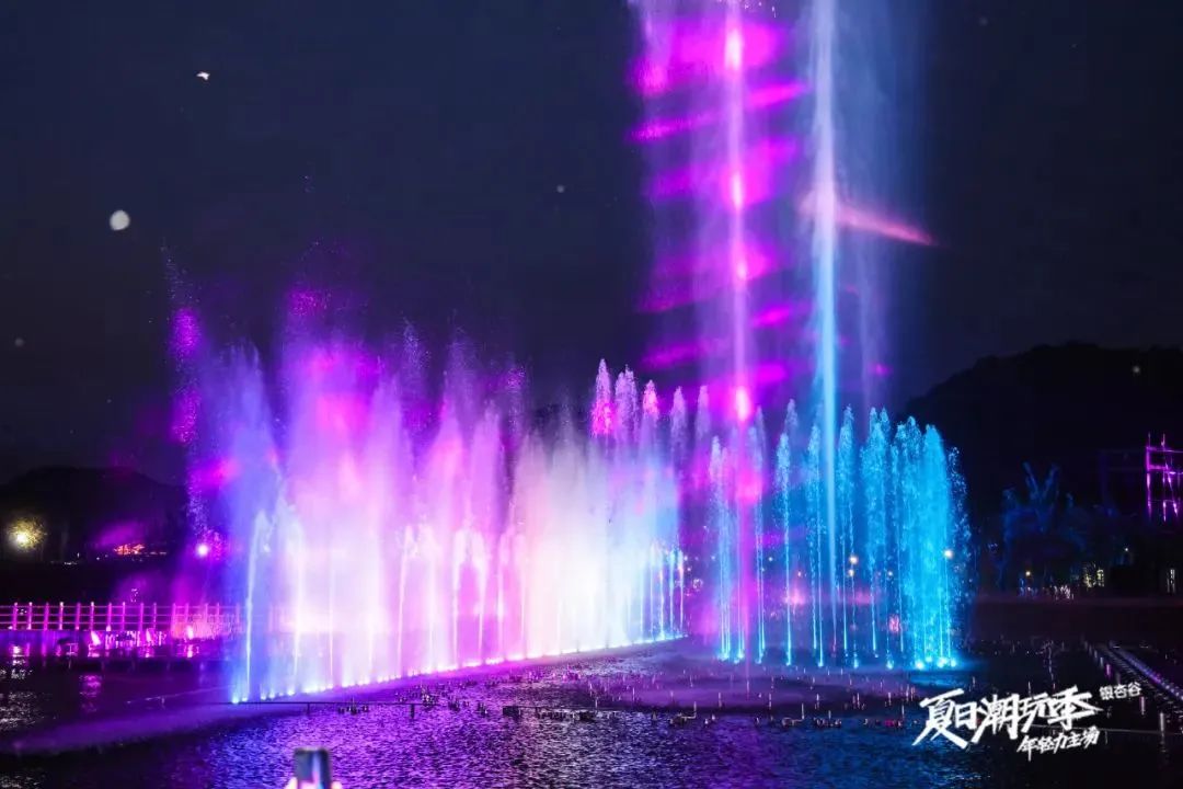 “以前的银杏谷是童话山谷,现在增加了大面积水域。满山谷的银杏叶营造了森系治愈的氛围,让这里的水幕秀也显得浪漫。”市民游客李倩倩说。主打潮玩,银杏景景区的水幕秀也增加了动漫、数字人电音等元素。
