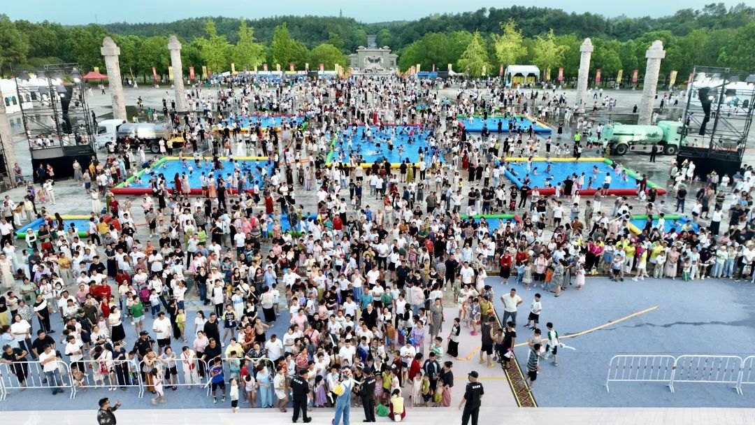 随州博物馆广场前的夏日狂欢,主打“古风”“文博潮玩”,“水”元素只是锦上添花。主舞台区编钟雅乐重现、古风舞蹈快闪、非遗技艺展演,好戏连台;市集区30多个摊位包含文创手作、非遗体验、特色美食,琳琅满目。游客还可通过打卡集章兑换限定文创,将文化打包带走。