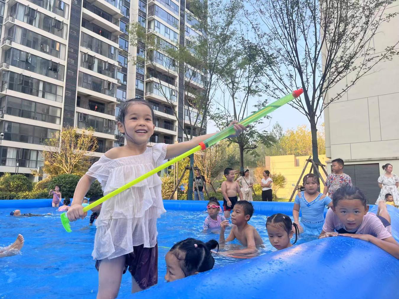 多彩活动添乐趣,小区温情暖人心。活动期间,村委会与物业结合青少年兴趣特点,先后组织了露天电影展播、“小鬼当家”跳蚤市场、水上乐园狂欢等特色活动。露天电影现场,孩子们坐在一起观看经典动画与红色影片,家长们在旁交流育儿心得,晚风伴着欢声笑语,勾勒出温馨和谐的小区图景;跳蚤市场上,小“摊主”们认真摆放玩具、书籍、手工艺品,在交易中学会沟通分享,悄悄种下理财的小种子;水上乐园里,孩子们在安全防护下尽情戏水,家长们全程守护,快门声定格下无数亲子欢乐瞬间。