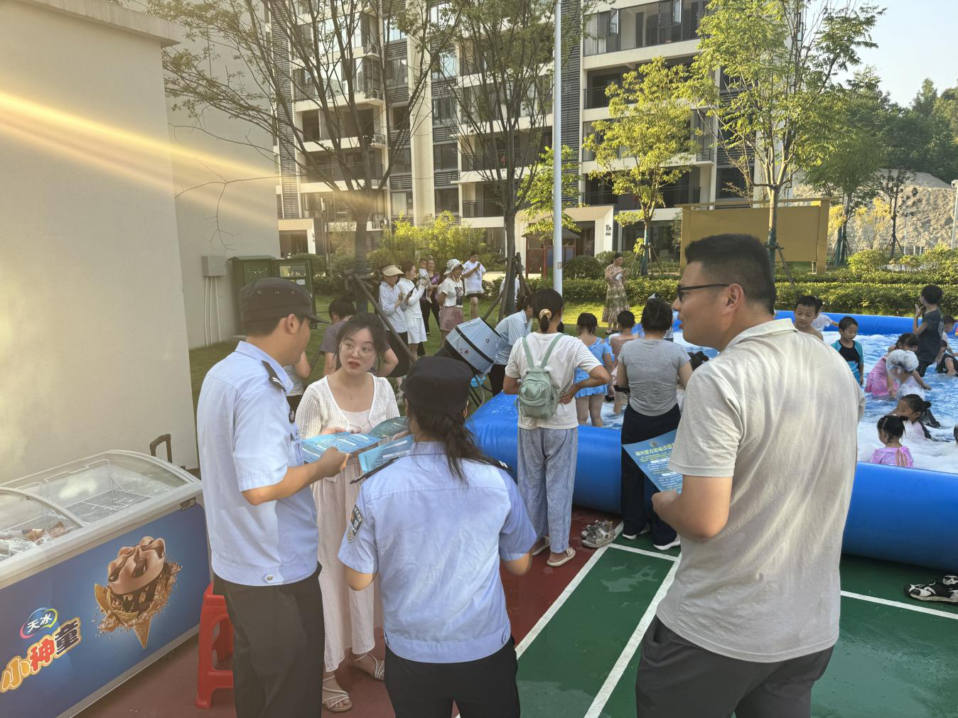警民携手传安全,防范意识入心底。活动中,安全宣传环节因涢水派出所民警的加入更显生动权威。针对夏季溺水高发问题,民警结合真实案例,用孩子听得懂的语言讲解防溺水“六不准”,现场演示简单救援技巧,叮嘱家长务必做好监护;反电诈宣传中,民警结合近期高发的“游戏充值诈骗”“冒充客服诈骗”等案例,揭秘骗子套路,手把手教大家安装“国家反诈中心”APP,提醒大家“不轻信、不透露、不转账”。志愿者与物业工作人员则配合发放宣传单,让安全知识在轻松互动中走进每个家庭。