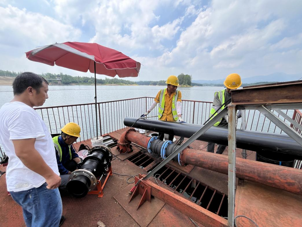 受持续干旱影响,水库水位急剧下降,源水取水面临严峻挑战。公司迅速行动,针对不同情况精准施策:针对沙河口水厂,紧急完成配电设备改造升级,确保取水泵机组在极端条件下稳定运行;针对柳林白果河水库取水点,因水库水位过低取水困难,果断将取水口向上游迁移1公里,有效保障源水供应和水质安全;针对殷店天河口水厂制水能力不足问题,紧急增设取水泵机组,提升水厂产水能力,确保供水稳定。