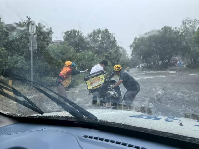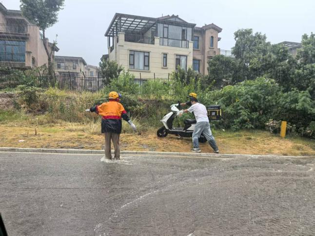 8月6日下午,风光社区上演暖心一幕。突如其来的暴雨中,正在巡查的网格员发现一名外卖小哥连人带车摔倒在雨水中,沉重的电动车将骑手牢牢压住,情况十分危急。