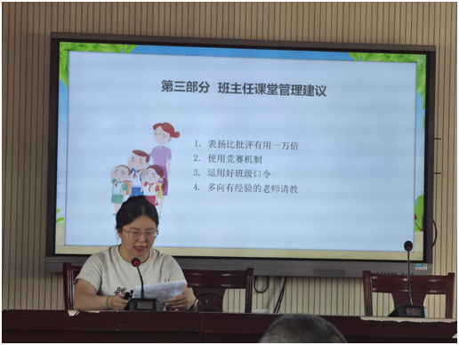 教联体陈畈校区刘琳老师作为班主任新人,也分享了她在班级管理中的体会。她认为,安全管理是班主任工作的重中之重,要从“被动应对”转向“主动预防”,通过细致入微的日常管理和前瞻性的风险排查,逐步构建起一道坚实的安全防线,为学生的健康成长保驾护航。