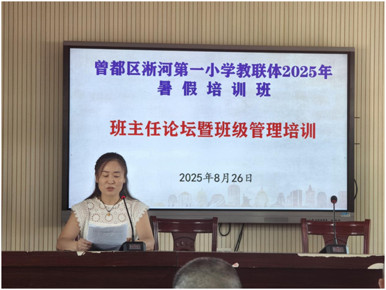 随州新闻网讯 (通讯员周菲)8月26日,淅河第一小学班主任论坛顺利召开。本次论坛以交流班主任工作经验、提升育人能力为主题,多位优秀班主任分享了他们在班级管理、家校沟通、学生培养等方面的宝贵心得。学校政教副校长吴方金主持会议,各校区班主任积极参与,共同探讨新时代班主任工作的创新与实践。