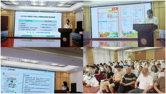 本次培训采用集中培训和分学科培训的模式。三位年轻教师开展语数英新教材培训,学科负责人进行分学科教学研讨。
