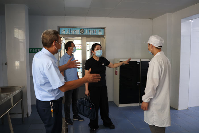 督导过程中,督导组重点检查了校门口安防“八件套”及一键报警器运行情况,翻阅校园安全隐患排查记录,要求持续加强校园周边交通疏导,筑牢校园安全防线;在后勤保障区域,先后查看了学生食堂、宿舍及物资储备室,核对食材采购台账与检测报告,检查消防设施与用电安全,叮嘱学校要严把食品安全关,保障师生饮食与住宿安全。