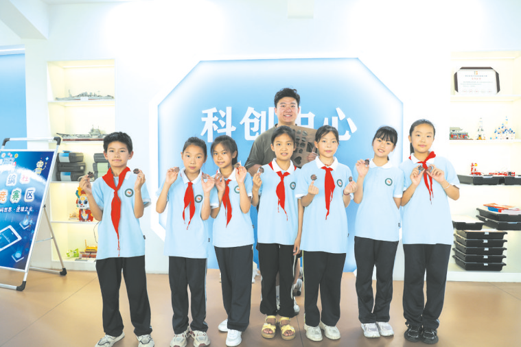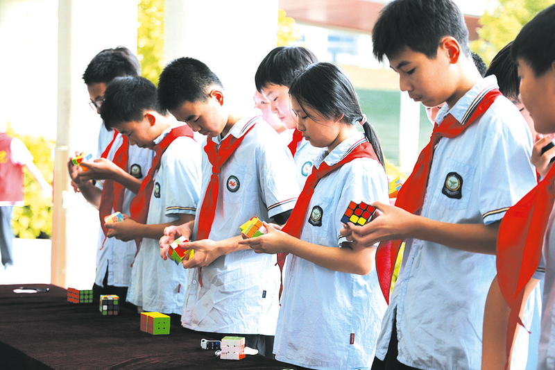 为全面提升学生科学素养,五丰学校构建了“技能训练—科普普及—社会实践”三位一体的科学实践活动体系,系统激发学生的科创热情与实践能力。 坚持在传统活动中融入科创元素。一年一度的科技节吸引校内外师生、家长超5000人次参与,涵盖科学论文、科幻画、科技制作、种植实践、创意搭建、七巧科技、实验操作及现场竞赛等八大类内容,魔方大赛、生物多样性观测、智慧农场劳动实践等特色项目广受好评。这些活动不仅点燃学生对科学的热情,更成为展示创想、锻炼能力的重要舞台。五丰魔方校队展示