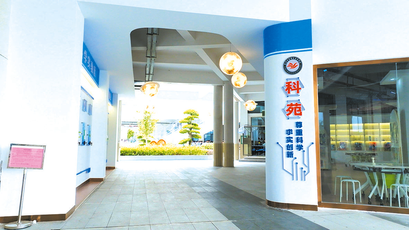 “科苑”科普长廊创设了科普阅读区、科学实验区、科技创新区三个主题板块和一个科普教育工作室。其中,科普阅读区陈列2000余册科技图书,孩子们可以在科学书籍的海洋中自由徜徉;科学实验探究区配备声学、光学、电学、力学等先进设备,让校园变身流动的“科技馆”,学生可以手动操作,以直观体验领悟课本知识;科技创作中心工坊里,与机器人对话,3D打印机将学生的创意变为现实,琳琅满目的科创作品凝聚着学生的智慧。