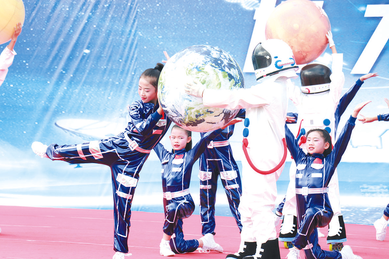曾都区五丰学校创建于2020年,作为一所公办九年一贯制高标准、现代化学校,学校深入贯彻“双减”精神,落实《教育部等十八部门关于加强新时代中小学科学教育工作的意见》,以“办一所承载美好未来的现代学校”为办学愿景,确立了以“创客教育”促智慧校园建设发展的战略目标。 “过去,许多学校面临科学教育资源不足、师资力量薄弱、课程单一等困境。”五丰学校校长文敖坦言,“科学教育不仅是必修课,更是贯穿教育全程的核心内容;不仅是辅助点缀,更是培养学生核心素养的底色。特别是在‘双减’背景下,如何做好科学教育加法,成为许多学校亟待解决的课题。” 顶层设计,为科学教育实施提供制度保障,规划战略布局。学校成立由校长任组长的科学教育工作领导小组,制定《五丰学校科学教育总体方案》和《科学教育五年发展规划》,构建“1+3+N”管理网络——以科学教育中心为核心,下设课程研发、活动策划、资源保障三个工作组,由科技辅导员、学科教师构成的“科学精兵导师团”,覆盖所有学科教研组,形成全员参与、全程融入的科学教育体系。 五丰科普舞台剧《飞天梦》
