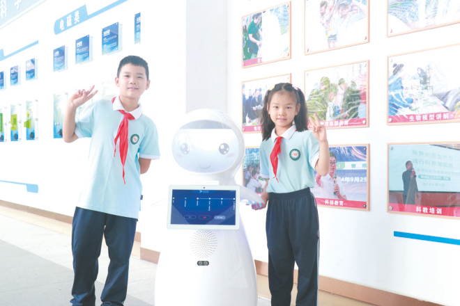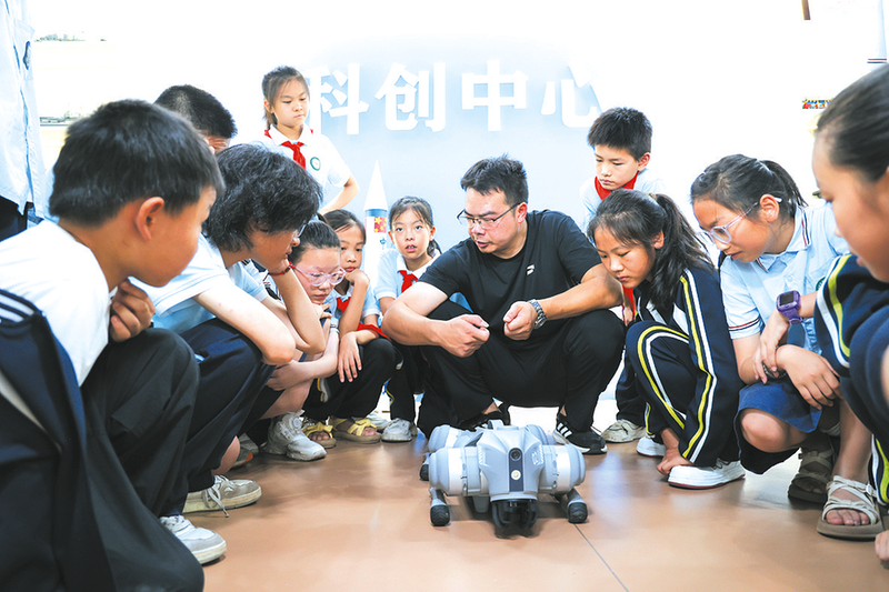 学校开设科学类校本课程。除抓好常规教学、开齐开足科学课程外,自2024年秋季起,在1-8年级每周另开设一节人工智能和创客教育校本课程,全面融入人工智能教育模块,开发校本课程《人工智能》,并在小学和初中各设一个实验班。学校还对全校的专兼职科学教师进行了系统培训。这一举措深受学生喜爱,也得到了家长的高度评价。 学校将科学教育纳入课后服务。自2023年起,按照“普及型—提高型—精英型”分层设计,广泛开设分层分类的科学类社团活动。各年级每周开设两节科学社团活动课,分为机器人编程、科技制作和无人机三大类课程,低年级“小小科学家”通过趣味实验启蒙兴趣,中高年级机器人社团掌握编程基础。科技类社团秉承在生活中启迪智慧、在实践中收获知识的理念,吸引热爱科学的小小探索者,激发他们的创新思维和团队协作精神。学校先后开发出无人机飞行、无人机足球、3D打印、开源组件机器人、虚拟编程、科技制作、数字绘画等多门创客社团课程,吸引了800余名学有余力且对创客课程有兴趣的学生参加。
