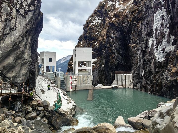 这是2025年3月17日在尼泊尔中北部拉苏瓦县拍摄的三金考拉水电站大坝。新华社发(中国港湾工程有限责任公司供图)
