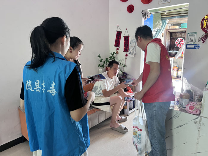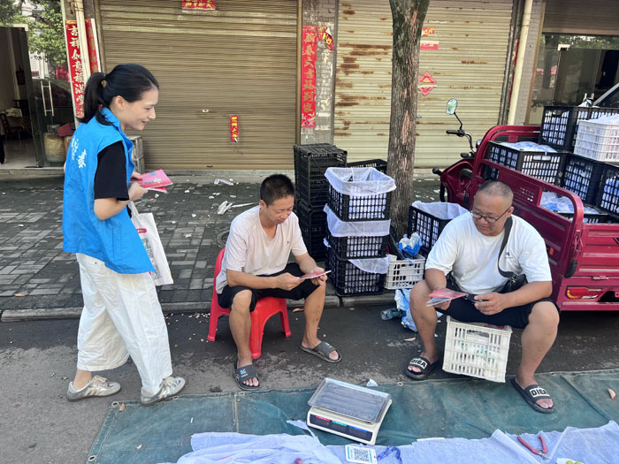 随州新闻网讯(通讯员郭鑫)8月29日,澴潭镇社区戒毒康复中心联合政法办、司法所,在镇区金潭街开展沿街商贩禁毒宣传活动,通过逐户发放宣传单的形式,将防毒知识送到经营一线。