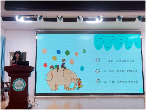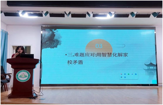 来自岁丰学校的徐旭旭老师幽默风趣,生动地诠释着她在构建家校共育中的真诚、耐心、细心、爱心与智慧。