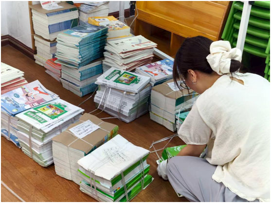感恩广场上,学校精心准备的迎新节目正在有序排练。而在教务处,各种开学准备已经安排就绪,老师们正围着教材堆 “分工协作”,语文书、数学等各种教材按班级分装成摞,只待学生领取。