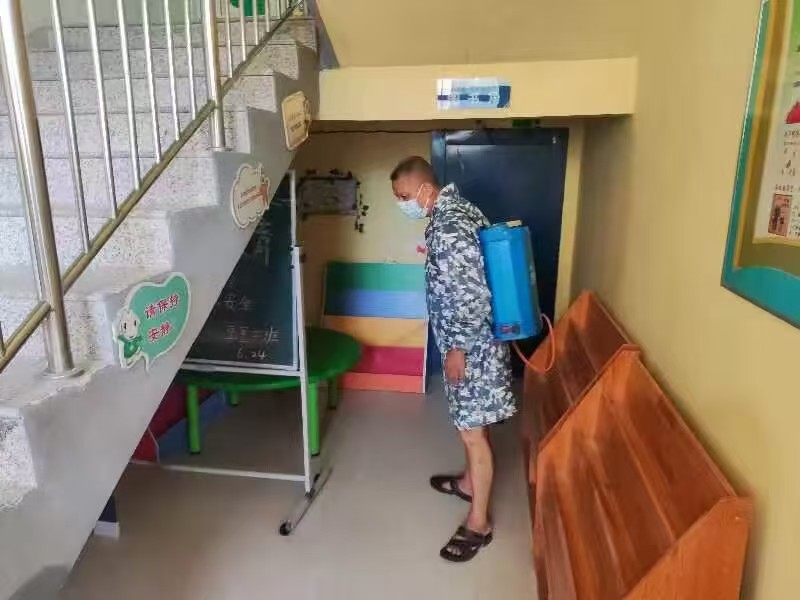 8月23日,全体教职员工准时到岗,对幼儿园室内外环境进行了全面清洁与消毒,尤其针对园舍周边排水沟等易滋生蚊虫的区域进行了重点清理和消杀,从源头上杜绝卫生隐患,营造健康舒适的校园环境。