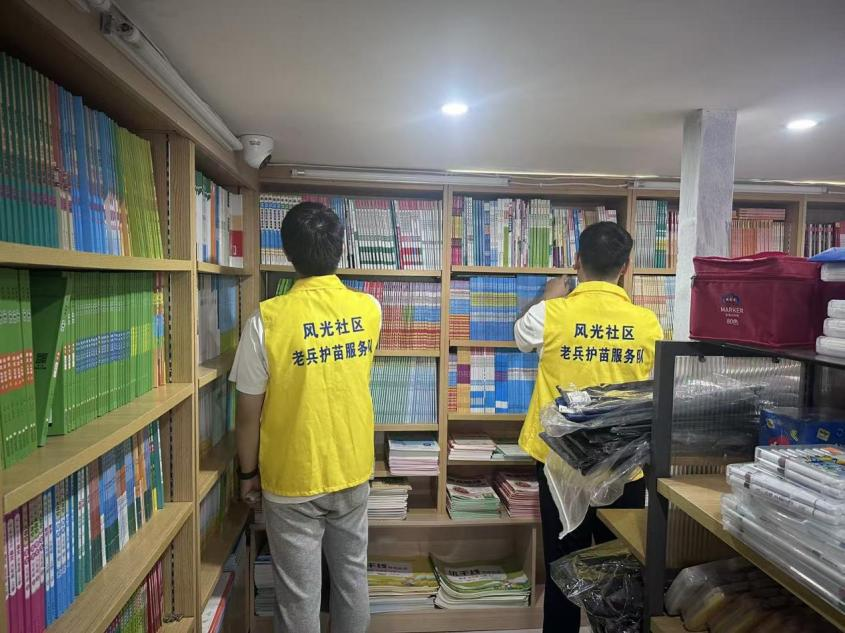 风光社区老兵护苗志愿服务队重点检查辖区内、白云湖小学周边书店、文具店等经营场所,查看经营场所的证照是否齐全,消防设施是否配置到位,同时,工作人员仔细检查在售书籍、教辅材料,重点甄别是否存在盗版版本,同时对“口袋书”“漫画册”及趣味卡牌等青少年常用物品逐一查看,严防含有不良内容的产品流入学生手中,并向经营者普及《出版物市场管理规定》,要求开展自查,严控进货渠道。