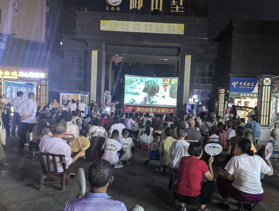 当夜幕降临,以抗洪精神为主题的电影《峰爆》开始上映。影片讲述的是史无前例的地质灾害突袭县城,16万民众命悬一线,以老洪、小洪父子为代表的中国基建人同消防员、飞行员英勇逆行,守护人民生命安全,谱写了一曲“灾难面前生命至上”的“中国式救援”史诗。影片生动诠释了“万众一心、众志成城,不怕困难、顽强拼搏”的抗洪精神。居民们沉浸在紧张刺激的剧情中,时而为惊险情节捏一把汗,时而被动人片段所感动,不少人热泪盈眶,对守护家园的奉献精神有了更深切的理解与共鸣。