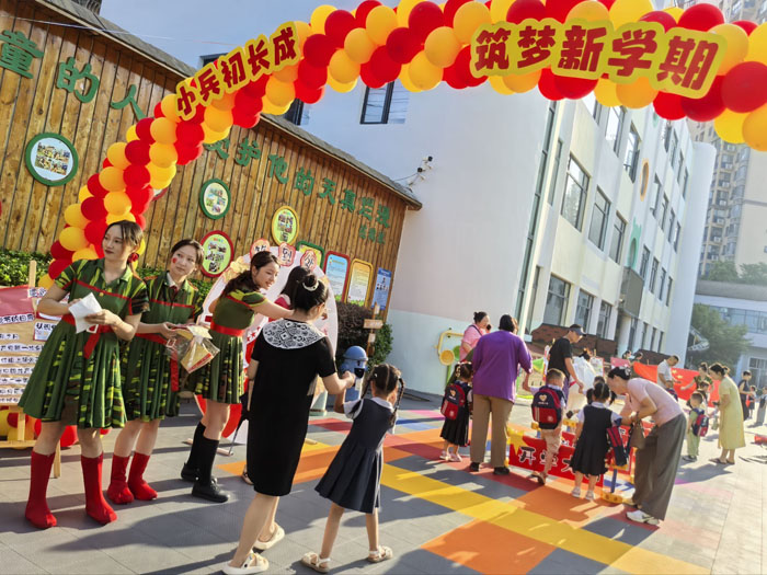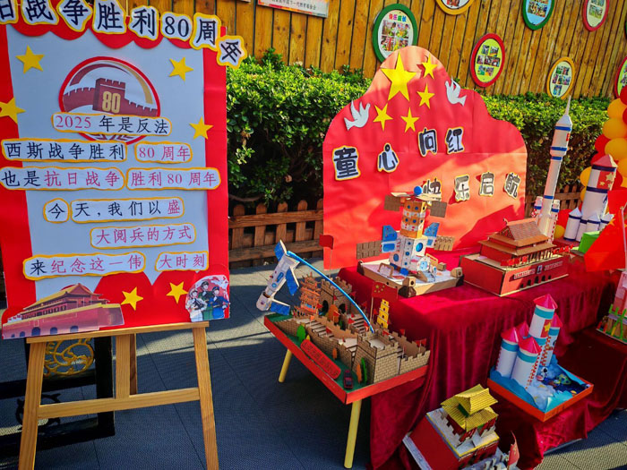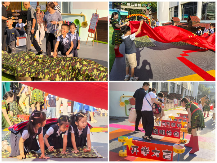 秋季开学正值抗战胜利80周年纪念日,幼儿园以红色为主色调装扮校园,营造出浓厚的爱国主义氛围。7点40分,孩子们在家长的陪伴下陆续入园,一场属于孩子们的“红色冒险”正式拉开帷幕。